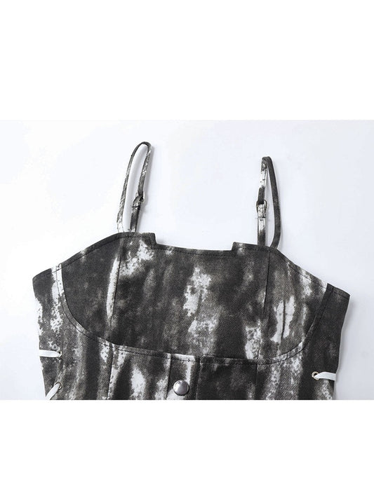 Sold outBleached Tie Dye Lace Up Mini Dress
