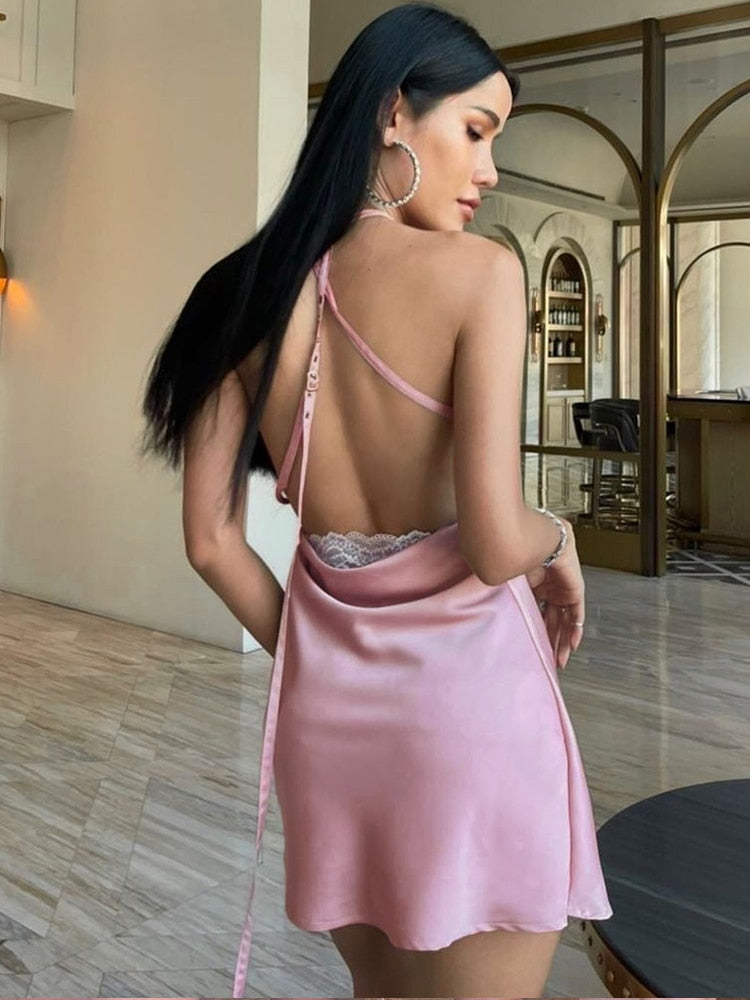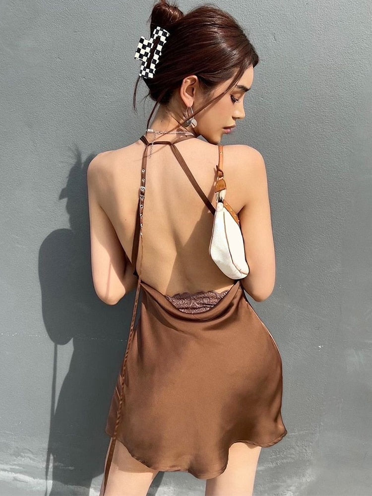 Dress Type: Slip, satin, pullover, mini, short, backless