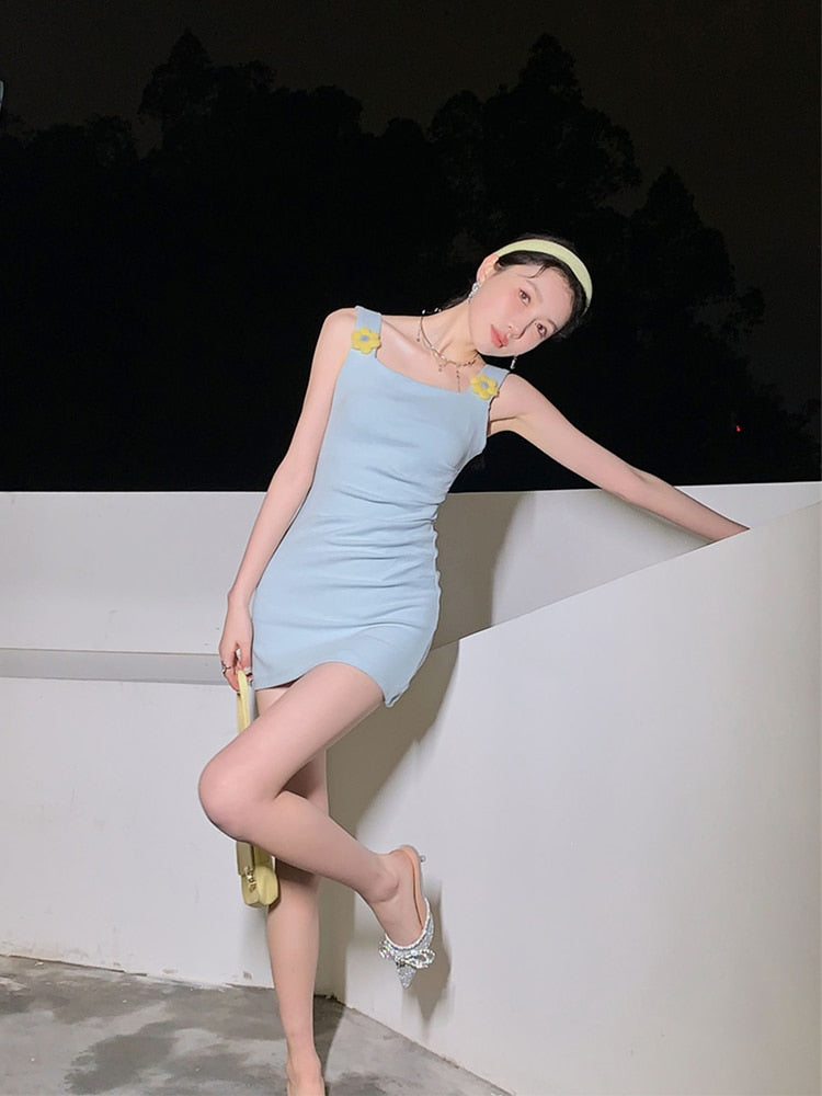 Daisy Duke Pale Blue Bodycon Mini Dress