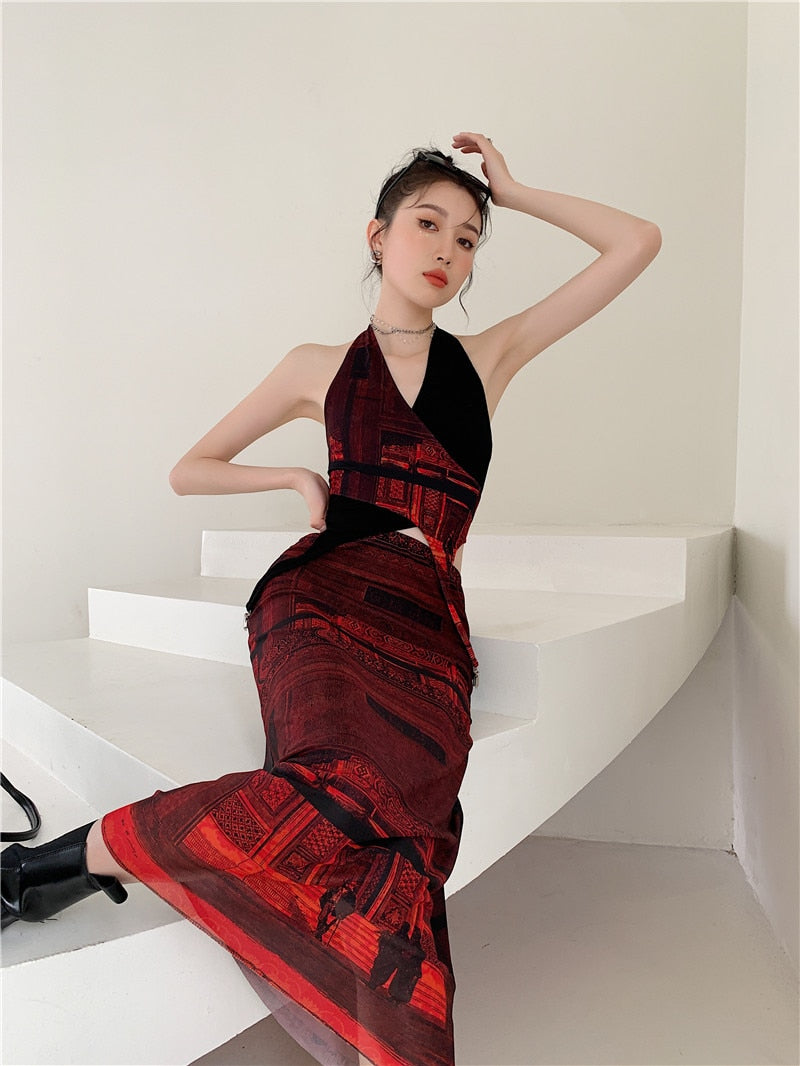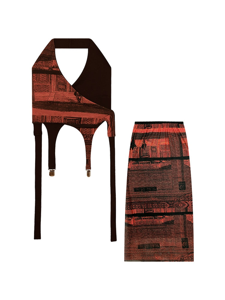 Type: 2 Piece, matching sets, skirt and top, long skirt, crop top, halter