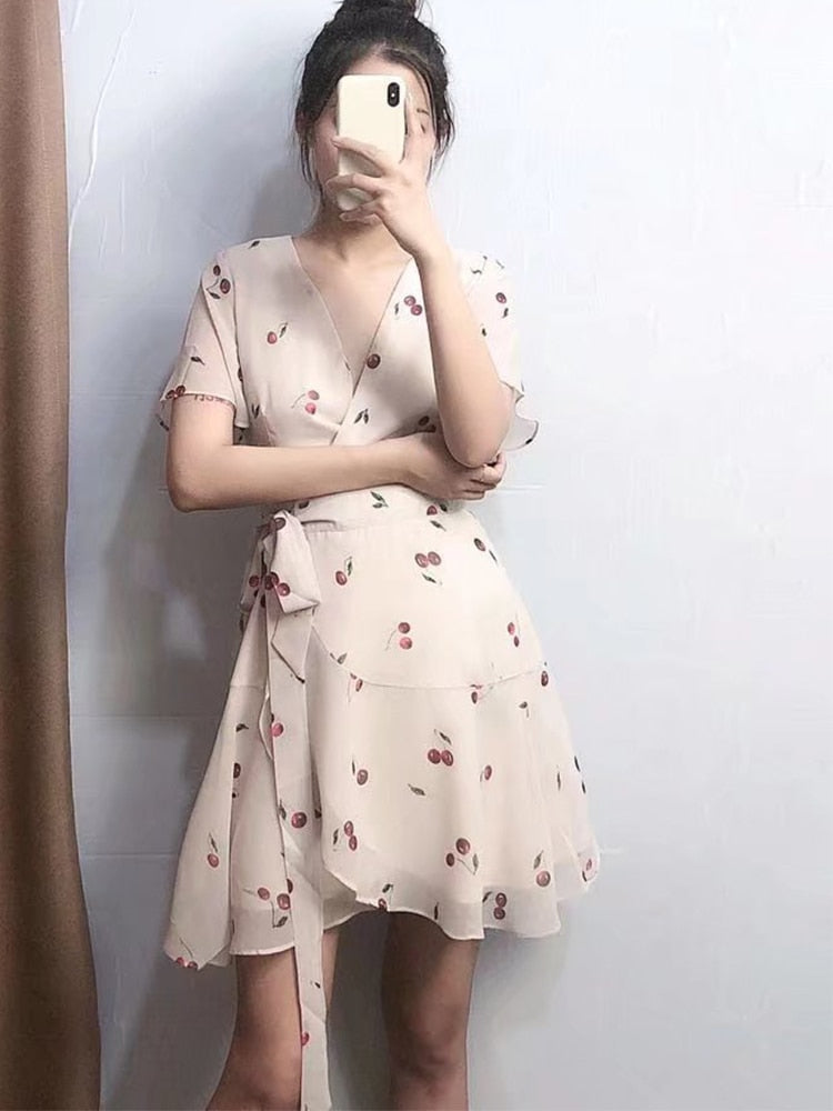 French Cherry and Frills Mini Dress