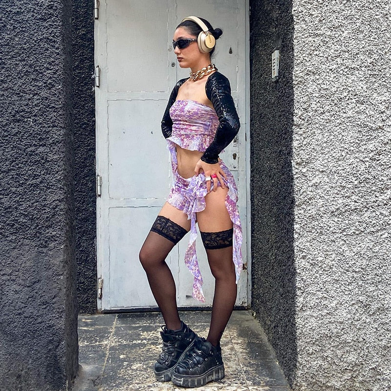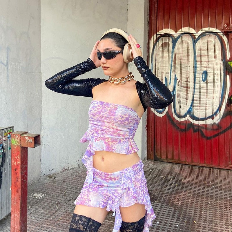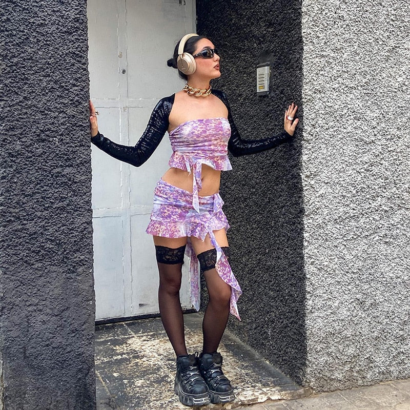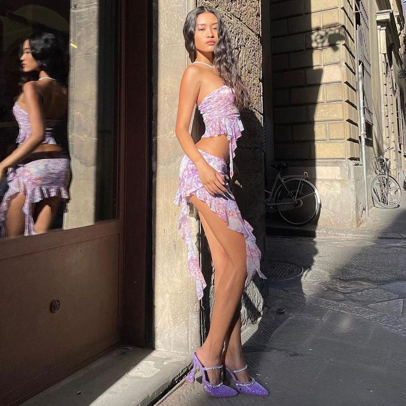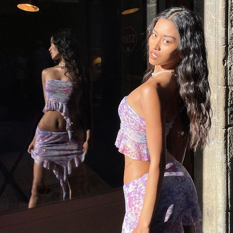 Lavender Lydia Asymmetrical Frill Skirt Set