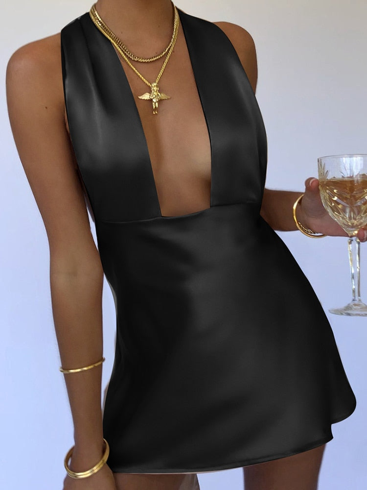 Adrian Adjustable Satin Mini Dress
