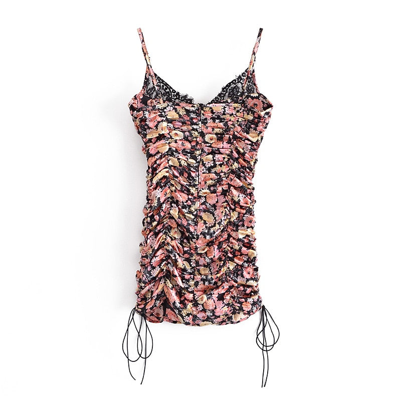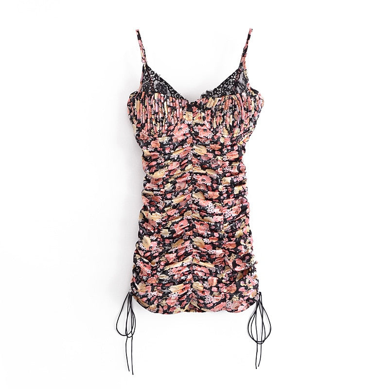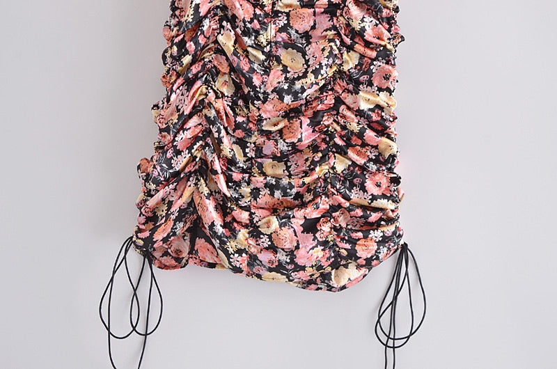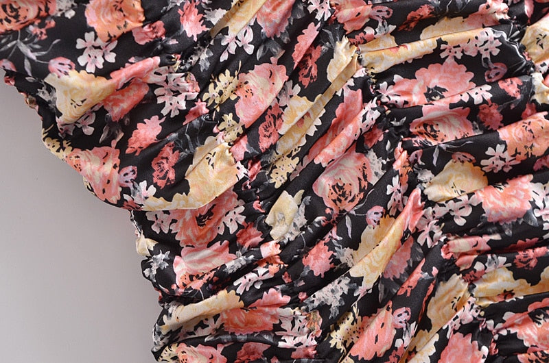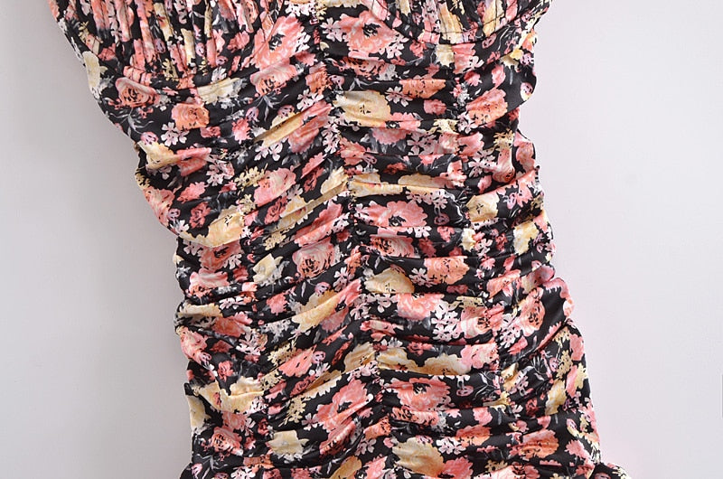 Valencia Vintage Floral Ruched Mini Dress